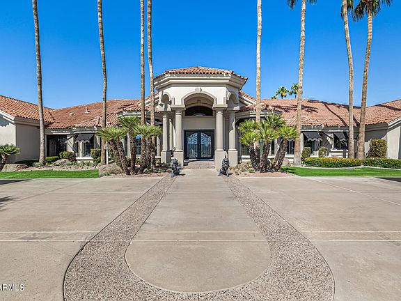 Discover the epitome of luxury living at 3818 East Brown Road, Mesa, AZ. This rare, gated, 4-plus acre equestrian estate is a dream come true for horse enthusiasts and those seeking an unparalleled lifestyle. Nestled in the heart of northeast Mesa, this single-level, custom-built Amberwood home spans 8460 square feet (Main House is 6836sf, guest house is 576sf, guest house basement is 1048sf) and offers an array of exceptional features. The property boasts a 4-stall barn, two tack/feed rooms, a wash rack, and an arena, making it perfect for equestrian activities. Inside, you'll find 4 spacious bedrooms, including 2 primary suites, and 4 well-appointed bathrooms. Primary bathroom has steam shower. The home is designed for both comfort and elegance, featuring formal living, dining, and family room with wet bar, a large office with wet bar, a gym, and a game room with wet bar. Car enthusiasts will appreciate the attached and detached garages that can accommodate up to 10 cars, with 6 garage spaces equipped with A/C. The outdoor amenities are equally impressive, with an amazing custom pool and patio seating, a covered patio with a fireplace, and an outdoor ramada complete with a fireplace and kitchen. The guest house/casita offers additional living space with 1 bedroom, 1 bathroom, a kitchen, and a basement that includes an exercise room and a shooting/archery range. The expansive lot is beautifully landscaped with large front and back lawns, numerous citrus trees, and mature palm trees, creating a serene and picturesque environment. Conveniently located close to the 202 freeway, residents enjoy easy access to all parts of the Phoenix metro area, including PHX Sky Harbor. The property is an ideal choice for families. For recreation, the Mesa Tennis & Pickleball Center at Gene Autry Park are just a short drive away. This home offers the perfect blend of convenience and luxury. This estate is not just a residence but a lifestyle choice for those seeking the best in Mesa living. Don't miss out on this extraordinary opportunity to own a piece of paradise in one of Mesa's most sought-after locations.