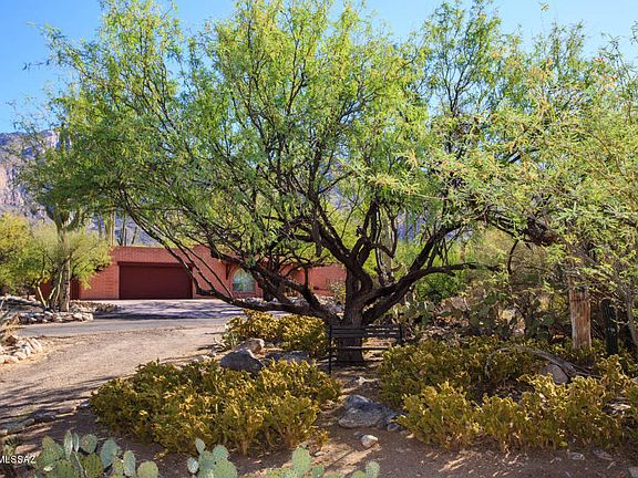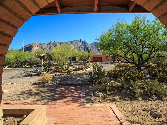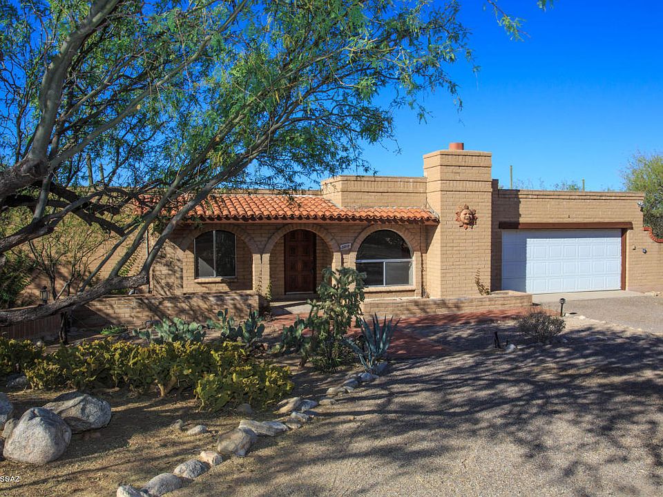 Classic Tucson Foothills ranch home in Foothills Cluster - features beautiful mountain views, open floor plan, 3 bedrooms, 2 baths, large sunken living room with cozy wood burning fireplace, formal dining room perfect for entertaining, large eat in kitchen, new central AC, District 16! You will love the privacy hidden amongst the lush desert vegetation.