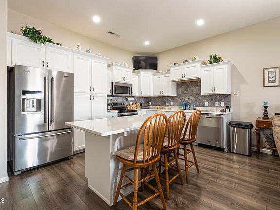 Just like new this well taken care of patio twin home features 2 bedrooms, 2 bathrooms and over 1319sq ft of living space on the water! The kitchen comes equipped with Maytag appliances, quartz counter tops, pantry cabinet with roll outs, soft close drawers and doors, great sized island, and room to make those home cooked meals. This home also boasts natural light from the 9 foot patio door and 10ft ceilings. The Primary Bedroom is great sized and the Primary Bath features dual vanity, walk-in shower and a HUGE walk-in closet! The guest bedroom is spacious and the guest full bath features a linen cabinet. During the summer, entertain in style with the covered patio, fire pit and view of the pond! This home also comes equipped with a 10 x 6 office in the 3rd Stall Garage (this can be taken down to access the full garage)! This home is also energy efficient! Call your favorite realtor today!