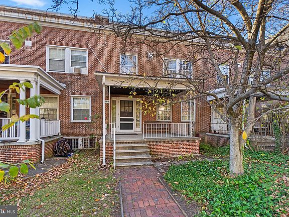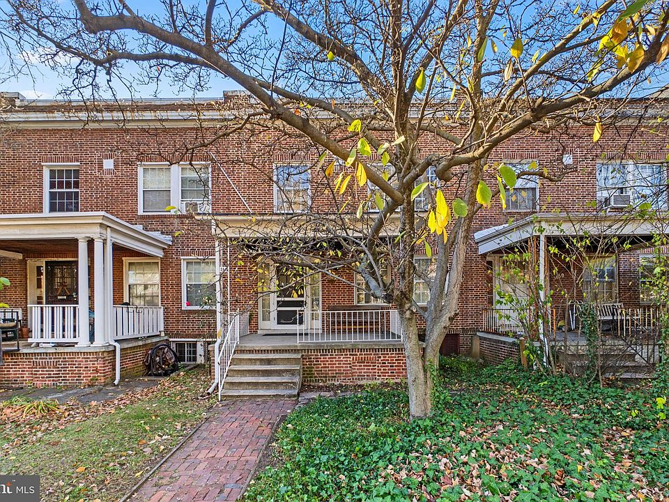 Owned by the same family for nearly 50 years, this classic porch front row-home in the historic Guilford neighborhood exudes original charm with 3,206 square feet of living space. There are 5 bedrooms, and 2 full baths. Intact details such as beautiful wood floors including inlayed wood craftsmanship , working pocket doors, original 5 panel doors, lucite door knobs, and push button light switches will take you to a bygone era. A brick front walkway steps up to a welcoming covered porch. Enter through the oversized front door, adorned with a brass mail slot and door knocker, into a spacious foyer. From the foyer enter through French doors leading into the living room, take the gorgeous staircase to the second level, or walk through to the main level bedroom. Rich hardwood floors flow through the home. A focal point of the house is the living room, with large paned windows, a white washed brick fireplace with flanking sconces. The living room leads into what was considered a parlor when the home was built. Pocket doors are featured and can separate the kitchen from the living area. The spacious eat-in kitchen includes select stainless steel appliances, a gas range, ample white cabinetry, exterior access, and a cozy breakfast nook perfect for casual meals. Completing the main level is an expansive bedroom, beautifully enhanced by rich emerald green walls with a full bathroom with walk in shower. Upstairs, the home boasts 4 generously sized bedrooms with ample closet space and a shared bath. One bedroom provides access to a private balcony with stairs leading down to the backyard. The lower level offers a versatile space for customization and includes laundry facilities, abundant storage, and walk-up access to the backyard. The fenced backyard includes a brick patio, deck, and a detached garage, creating a private and functional outdoor space. Guilford offers residents easy access to nearby amenities, including local shops, dining options, and cultural landmarks, and is conveniently located near major commuter routes such as I-83 and North Charles Street. Home is being sold As Is.