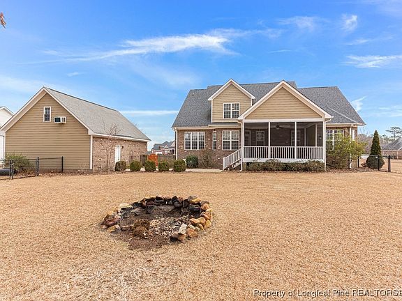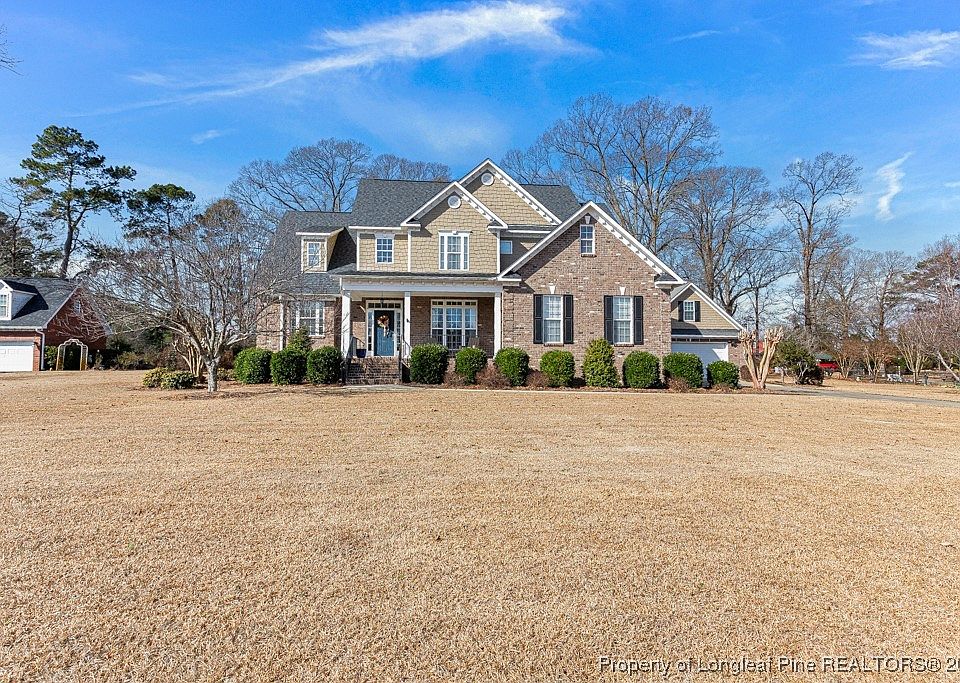 Custom brick home with a stylish touch in every room. Let's not forget the detached garage with its own bonus room. All of this for under $500k. This 4-bed, 3.5-bath home perfectly blends country comfort with modern elegance. The first floor offers a dining room with coffered ceilings, living room and entry have high ceilings. There's a keeping room located off the kitchen with its fireplace. Kitchen features granite countertops, tall cabinets, stainless steel appliances, breakfast nook and picturesque views of the backyard. The oversize main bedroom and en suite located on the first, with custom walk-in closet, separate vanities, tile shower and soaking tub. Upstairs is open to below features a loft, a bedroom with its own bath and large walk-in closet, and two more bedrooms shares a full bath. Enjoy relaxing on the covered front porch or the screened back porch. Location is perfect 15–20-minute drive to downtown, restaurants, shops, and Fort Bragg.