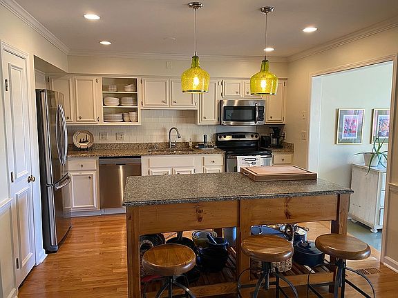 Second floor condo for sale in the heart of St. Matthews, on a quiet dead-end street. This 1,468 square foot condo has two bedrooms and two full baths. It is move-in ready with hardwood flooring and granite counter tops throughout, lots of closet space, and tons of charm. Unit is perfect for entertaining based on updates made in 2015 - opened the kitchen into the dining room, extended the hardwood into the kitchen, and added a custom-built island. The living room has bookcases built in on each side of a large, leaded-glass window. The sun room at the back of the unit is currently being used as a dining and office area, but could be used as an additional living room. The spacious primary bedroom has three closets, and an en-suite bathroom. Additional features / updates include recessed lights throughout, laundry hook-ups inside the unit, Pella windows in the sunroom, new counter depth refrigerator (2017), added a kitchen backsplash (2017), and a new water heater (2018). All kitchen appliances remain. Additional laundry hook-ups in the basement as well as a storage unit. 1 covered carport space. Monthly HOA fee is $335 / month and covers water, sewer, trash, master insurance, grounds-keeping, exterior maintenance and snow removal. The association’s updates include new roof (2015), exterior brick painted (2016), driveway sealed (2019), new gutters (2020), and back of building painted (2021). No rentals allowed. Pets must be below 10 lbs.