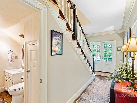 This beautiful and well-maintained home, sitting on almost a half acre double lot in the heart of Spring Hill, offers great space inside and out for living and entertaining. Special features include tall ceilings with pretty crown molding, hardwood and brick floors downstairs, an updated kitchen with a breakfast area opening to the cozy den with a wood burning fireplace and custom built-ins, separate living and dining rooms perfect for gatherings, and a double carport with a storage room. In addition to the abundant living and dining areas downstairs, there is also a sunroom with plentiful, large windows overlooking the private backyard oasis. Upstairs you will find the spacious primary suite complete with two large walk-in closets and a newly updated bathroom with double vanities, the laundry room, and two additional bedrooms both with walk-in closets and connected by another updated bathroom with a double vanity. The many windows on all sides of the home allow you to look out over the gorgeous, professionally designed garden even when you are not actually outside relaxing in the tranquil outdoor living area which includes a deck, waterfall, fish pond, gazebo, and an architectural wall. Designed by Terry Plauche and installed by Total Quality Landscape over ten years ago, the trees and bushes have matured and filled out creating the most peaceful haven from the outside world. Located in a prime Spring Hill location, this fabulous home is close to several schools, churches, hospitals, parks, shopping, and sidewalks. Buyer to verify all pertinent information during the due diligence period.