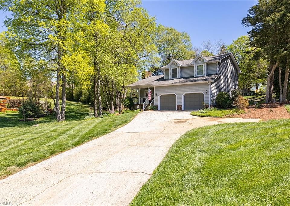 Back on market no fault of sellers. Beautiful home in desirable area of High Point on cul-de-sac lot. Welcome inside and you’ll see vaulted ceilings, luxury plank vinyl in on the main level, and lots of gorgeous built- ins! Home has tons of natural light, stunning masonry wood fireplace, bay window and seating bench in the. Open kitchen with stainless-steel appliances, wet bar, spacious dining area, solid surface counters, and beautiful tile backsplash. Awesome deck overlooking amazing backyard close to one acre. Extra-large bedrooms with new carpet, paint. Huge primary bedroom has two closets, private bathroom with new shower, vanity, and toilet. Covered front porch. Newer roof, and HVAC, tons of other updates.