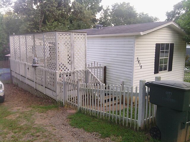 very spacious 2 bedroom 2 bathroom mobile home, has 2 huge front and back porches. The back porch is enclosed and covered, the roof is about 4years old, which is roofing not aluminum. the whole lot is enclosed in with fencing and has been very well kept up. the lot rent is $235.00 per month and only has one utility bill.