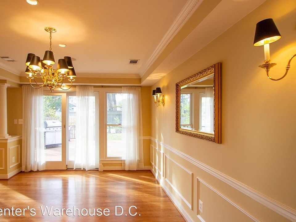 Luxury Living - 3 Bedroom/2.5 Bathroom in Heart of Fairfax City - Gourmet Kitchen, Custom Finishes - Must see this luxurious 3 bedroom/2.5 bathroom home located in the Fairchester neighborhood in the heart of Fairfax County. As us about our Security Deposit-Free Option! A leaded glass & wood front door welcomes you into the marble floor foyer which offers a generous double-door coat closet. The formal living room has beautiful hardwood floors, a fireplace and lots of sunlight from the large window with a view of the front yard. The open area concept with a gourmet kitchen, dining room and family room - all with hardwood floors, is at the rear of the home. The kitchen is equipped with a Thermador Pro six-burner rangetop and hood, oven/microwave and warming drawer, Bosch dishwasher, double-door refrigerator and double basin sink. The mahogany cabinets offer generous storage space and the built-in butler pantry and desk give added convenience. Gleaming granite countertops give ample space to work and to serve meals. The dining room with chair railing, crown moulding, custom chandelier/sconces and uplighting, offer a more formal dining experience. The convenience of a half-bathroom and laundry room are located through a pocket door to the side of the living room. Double doors from both the living room and dining room lead to the large backyard deck and also offer lots of sunshine. The large master suite is carpeted, has custom window shades, a fireplace and double doors leading to the backyard deck. Recessed lighting, uplighting and a ceiling fan offer several lighting options. There is a walk-in closet, with shelves and drawers, plus an additional closet. The spa-like master bathroom has a double sink, soaking tub and luxury steam shower with two showerheads and a built-in bench. Two additional bedrooms share a full bathroom off the hallway. Each bedroom has hardwood floors, custom shades and a ceiling fan. The lower level has a large room for fitness equipment, a storage/utility room, a newly finished office space with storage closet and a second storage room. The beautifully landscaped backyard, with a large deck, offers a quiet place to relax and entertain. A one-car garage with opener, driveway and street parking give plenty of space for your vehicles. Convenience of major commuter routes, busline, shopping, park, walking and more. (Note: Shed & Fireplaces are not for Tenant use. Luxury living at it's best! No Pets Allowed (RLNE6202221)