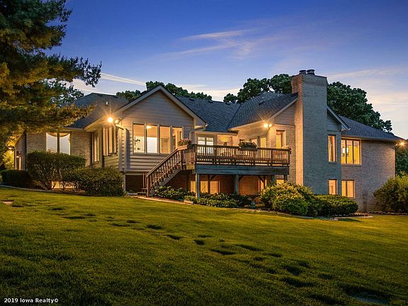 All brick walk-out ranch, on a cul-de-sac, set on a .88 acre lot with 4 large oak trees. The home has 4 BRs (2 BRs up & 2 BRs down, 5 baths, 4,758 SF finished (2,758 SF up & 2,000 SF down. The main floor has a formal dining room; private office with plenty of built-ins; family room with beamed ceiling and wood burning fireplace; eat-in kitchen with white cabinets, island, hardwood floors; three season porch; laundry room with lots of cabinets, sink & window; master bedroom with walk-in closet; master bath with 2 sinks, separate shower & whirlpool tub; second bedroom and 3/4 bath. The walk-out basement has 2 more bedrooms; one full bath; second family room with wood burning fireplace and walk behind wet bar; hot tub/exercise room. Extras include lawn irrigation, central vacuum, Pella windows, some with blinds in the windows.