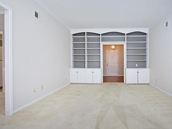 First Floor St Matthews Unit w/2 Garage Spaces & Move-in Ready! Features new interior paint, neutral carpet, crown molding, & closet space galore. Large Living Rm features a fireplace & built-in bookshelves. Formal Dining opens to Eat-in Kitchen w/ white cabinetry, neutral countertops, refrigerator, smooth top range, dishwasher & microwave to remain. Spacious Master Suite includes Master Bath w/dual vanity, walk-in closet & large linen closet. 2nd Bedroom offers double closets & center hall bath. Spacious Laundry Room w/cabinetry, laundry sink & washer/dryer to remain. Plus an entry foyer w/coat closet, hall linen closet & utility closet. Includes 2 parking spaces in garage w/heated driveway, an elevator from garage that is convenient to unit & extra storage space!