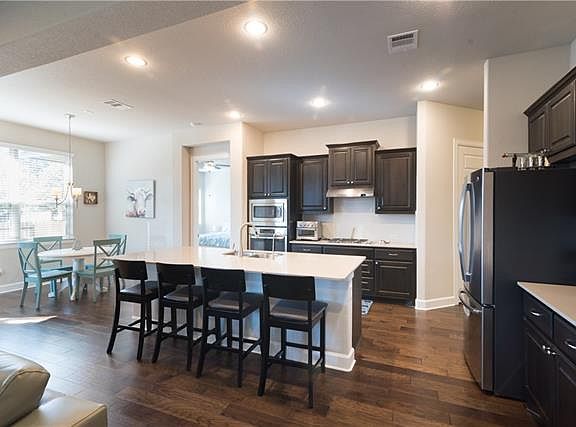 Fabulous floor plan with all bedrooms on 1st floor and media/game/bonus room and half bath on 2nd floor. Four bedrooms plus study offer plenty of room for everyone. Large owner's suite plus fourth bedroom has full bath. Lots of natural light and open layout with good flow for hosting small gatherings or large parties. Live here and enjoy all of the amenities Mayfield Ranch offers.