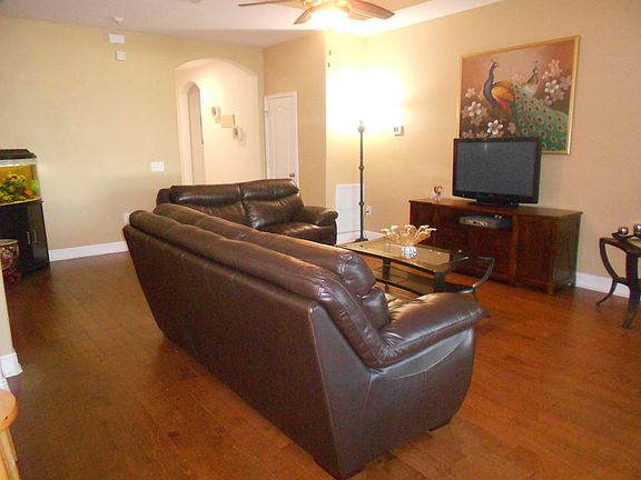 GORGEOUS HOME - NEW CONSTRUCTION, BUILT IN OCTOBER 2013 - 3 BEDROOMS AND DEN / OFFICE / 4th BEDROOM - 2 CAR GARAGE EXTENDED TO 4'ft - ENERGY STAR QUALIFIED - BAY WINDOWS IN BOTH THE KITCHEN AND MASTER BEDROOM - FENCED BACKYARD - BUILT IN LANAI WITH ENCLOSED EXTENDED PATIO ALL SCREENED. GRANITE COUNTERTOPS WITH UNDER MOUNT STAINLESS STEEL SINKS IN THE KITCHEN - APPLIANCES ALL STAINLESS STELL WITH BOTTOM FREEZER REFRIGERATOR INCLUDED - OSMOSIS INCLUDED - 42" CABINETS WITH CROWN MOULDING WITH PLENTIFUL CABINETS SPACE - KITCHEN IS OPEN TO THE GREAT ROOM WHERE FAMILY AND GUESTS NEVER LOSE A MOMENT IN CONVERSATION. YOU WALK INTO A BEAUTIFULWOOD FLOORING ENCASING THE GREAT ROOM MAKING YOU FEEL AT HOME - TRAY CEILING IN THE GREAT ROOM - WOOD FLOORING IN THE DEN - TILE FLOORING IN THE FOYER, KITCHEN, HALLWAY AND MASTER BATHROOMS - CEILING FANS IN ALL 3 BEDROOMS, GREAT ROOM, DEN AND PATIO. CAN YOU SEE THAT HUGE BACKYARD -GARDENING LOVERS GREAT OPPORTUNITIES! CAMERA SECURITY SYSTEM INCLUDED - FRONT AND BACK AND COMPANY MONITORED PROTECTION SERVICES (IF INTERESTED) PRE-PLOMBING FOR WATER SOFTENER LOCATED IN THE BEAUTIFUL ASHTON OAKS COMMUNITY NO CDD - ONLY HOA - QUARTELY PAYMENT