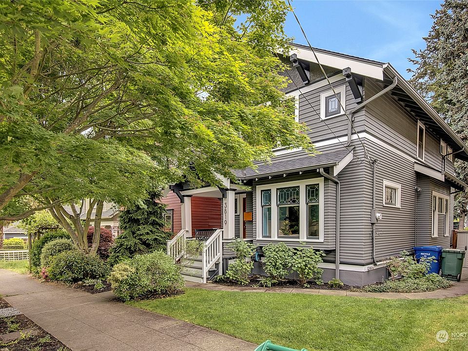 Step into this meticulously renovated 1911 Craftsman—an in-city retreat like no other. Every detail whispers of wood and artistic finishes. Stainless steel and imported woodwork dance together, creating an ambiance that transcends time. Upstairs, the master suite awaits—an outrageous haven with vaulted ceilings, exposed beams, and a private view deck where you can watch the fireworks July 4th at Gas Work Park and Space Needle. Two additional spacious bedrooms beckon. Updated systems ensure modern comfort, while the finished basement offers a rec room, plus an extra bedroom for your Au Pair with a full bath. Outside, the expansive deck and big backyard invites you to linger. This 4 bedroom, 3 bath home beckons. It’s sheer poetry.