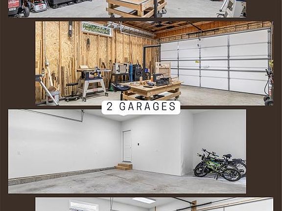 This beautifully maintained 3-bedroom, 2.5-bath home offers modern comfort & style. The open floor plan includes a spacious living room, dining room, & kitchen, creating a bright, inviting space perfect for daily living & entertaining. Cathedral ceilings & abundant windows add to the airy feel. The peaceful primary suite features a walk-in closet & luxurious bathroom w/double sink vanity. 2 addnl bedrooms, 1 w/a lovely view of the woods, share the full hall bath. Enjoy serene wooded views from the covered deck off the kitchen while sipping morning coffee or after a long day. The finished basement expands your living space w/plenty of room for entertaining & has a HUGE bonus room. Outside, you'll find a covered patio, green yard, & steps leading to the deck & garages. Car enthusiasts & hobbyists will love the oversized ATTACHED 2-car garage w/extra space for projects, PLUS a large DETACHED 2-car garage-perfect for a workshop or creativity. Come see this beautiful house & make it yours.