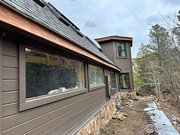 Entered as a comparable - sold prior to listing in MLS. Property included a shed and a custom greenhouse. The home is in good condition with some updates, rustic mountain charm with beams and log accents that also featured a large attached heated workshop. The property enjoys the rushing sounds of the creek located just across the street and included rock landscaped walls and gardens with a trail out the backdoor into the adjacent National forest. Only 1 mile to Highway 119 & 1.5 miles to Main Street Rollinsville.