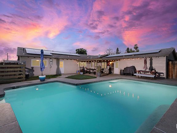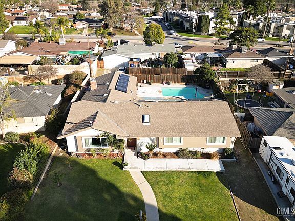 Looking for a sparkling pool and OWNED solar system? You've found it! This beautiful northeast Bakersfield home is conveniently located near shopping and restaurants, with easy access to HWY 178. Just a few blocks from Siemon Park and Col. Howard Nichols Elementary, this home comes complete with 4 bedrooms, including an extra-large primary suite with double closets and a spacious en-suite bathroom. The heart of the home is the great-room with newer vinyl flooring, and a recently updated gas fireplace. The kitchen and great-room windows look out onto the large covered patio and pool, perfect for the upcoming Bakersfield summers. The home also features an attached 2-car garage with alley access, and has wonderful curb appeal.