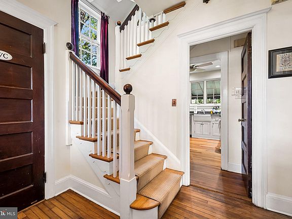 A gracious, beautifully maintained stone home awaits! Well-proportioned main level rooms include a gracious foyer which opens to the living room w/wood-burning fireplace and glass-paned French doors to both the sunroom and dining room. The updated kitchen offers gas cooking, granite countertops, glass-fronted cabinets and is adjacent to a mudroom. The fenced backyard has two patios - one awning-covered paver and one brick as well as access to the oversized 2 car garage. DON'T MISS THE FINISHED GARAGE LOFT with real stairs and windows - perfect for workout, office or recreation space. 3 bedrooms (one currently used as a dressing room) and two full baths (including an en-suite with steam shower) are on the 2nd floors along with a large bedroom, office and full bath on the 3rd floor. Gleaming wood floors and sparking windows throughout!