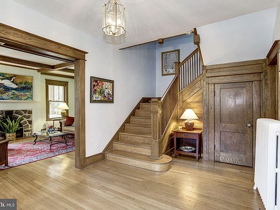 Enjoy living in this beautiful, historic 1914 Arts and Crafts home, with over 3,200 SF, in Chevy Chase, DC, a short stroll to Starbucks, restaurants, neighborhood park, grocery stores, movie theaters, Metro & More! Seller working on getting a permit for off street parking - please ask the listing agent for more information. Quality renovations throughout showcasing chestnut woodwork and doors, staircase, moldings, hardwood floors and architectural details throughout. Wonderful wrap around porch overlooking lovely front garden for get togethers with family and friends. Pocket doors into the dining room with custom chandelier and lovely stained glass windows. High ceilings, wood burning granite fireplace in the living room. The large first floor rooms flow together and are excellent for entertaining ~ living room to dining room, kitchen to the dining room and breakfast room, breakfast room to private patio. All white kitchen with custom cabinets and stainless steel appliances with plenty of storage and counter space. Four generous bedrooms and three baths on the second and third floor. Large master with sitting area and attached office space, beautiful cherry built-in desks and bookshelves. Second floor large front bedroom with a fireplace, built in cabinets and shelves can also serve as a family room or office. Private 3rd floor balcony with serene views of the neighborhood and sunsets. Unfinished lower level offers the potential for an in-law suite, recreation room and much more. Convenient urban living in a warm, gracious, beautifully restored home. Set up an appointment to see this historic beauty. 3d tour available.