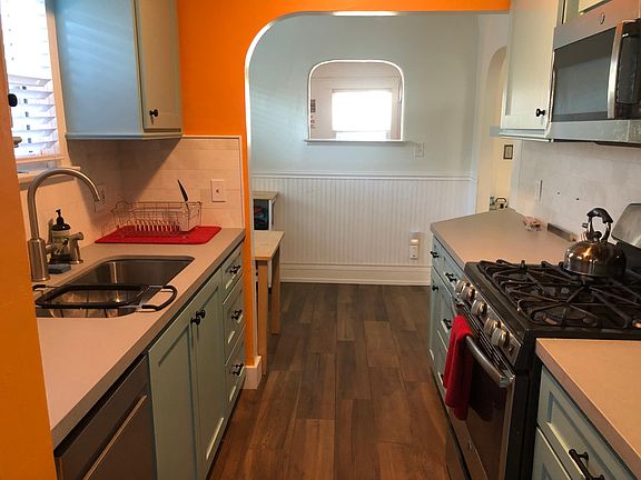 Charming 1926 Craftsman Cottage, recently upgraded and lovingly restored. Many period features were left intact, including original hardwood floors in the living and bedrooms, barrel ceilings, original door hardware, and even a little cubby in the hall for the telephone. Recent upgrades to the kitchen include all stainless appliances, quartz countertops, and new tile floors. The bathroom is also recently renovated with new tile in the shower surround, floors, and a water saving toilet. A new energy efficient mini split system was installed for heating and cooling. There is a working fireplace with a gas log insert for keeping warm and cozy on winter nights. The garage is brand new and has plenty of room for your car and storage. A full size washer and dryer is located in the garage. The entire roof of the garage is now an entertainers delight. The roof terrace gives you beautiful views over San Diego, and has a built in gas line for your barbeque grill, and a hose bib. The entire property is fenced, and the entry gate and driveway gate are locking for your security. The owner is active duty in the U.S. Navy, and is being stationed overseas for 18 months. Therefore, the house is being offered until August of 2023. ONE well behaved pet will be considered, with a pet contract and extra pet deposit required. This is a peaceful neighborhood, close to all the amenities on Adams Avenue, and just a few blocks to Kensington. No Smoking Inside the Premises Prospective renters will be required to fill out an application, and will be screened for credit and eviction history, and need to verify employment, proof of residence, and income twice the amount of the rent. Rent will include a monthly gardening service.