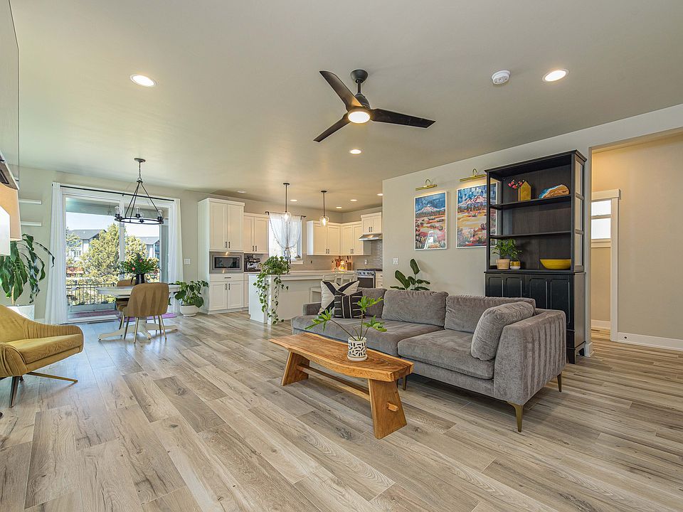 Located in the Petrosa subdivision, this beautiful 4 bedroom, 2.5 bath residence backs to the seasonal, Deschutes River Canal so that you can watch and listen to the water flow from April to October. Through the front door of this newer home, you will find an abundance of natural light accompanied by bright, neutral colors and an open floor plan. Open is the theme of the living space on the first floor this house. Vinyl plank flooring runs throughout the living room, dining and kitchen. The living room also features a gas fireplace for ambiance and added warmth. The kitchen is equipped with a four seat breakfast bar, quartz countertops, stainless steel appliances, a walk in pantry and plenty of cabinets for all of your dishes and hand-held appliances. Off the dining room and the main living area is a sliding glass door that leads to the back, covered patio and xeriscape backyard. Planter boxes and flower beds will be available for tenant use. There is a half bathroom downstairs, finished with quartz countertops and a large picture mirror. Upstairs, carpet runs through the hallway and all bedrooms. Only the bathrooms and laundry room have vinyl plank flooring. Features of the primary bedroom include a tray style ceiling with recessed lighting, large picture windows providing natural light and a large walk-in closet with built-in shelving and drawers. A dual vanity with quartz countertops, a walk-in shower and an enclosed toilet room are featured in the primary bathroom. The laundry room with a utility sink and plenty of counter space for folding clothes is located upstairs with all of the bedrooms. Included in the upstairs guest bathroom is a tub shower combo, and a large vanity with plenty of Quartz countertop space. Residents here have access to a full spectrum of private recreational amenities including swimming pools, community kitchen for BBQ, work out room, covered gathering space for large groups (for a fee), parks, green spaces, and paved paths. Dogs will be considered on a case by case basis. Cats are not allowed. Any approved pet will require an additional deposit. This home is offered for rent by Preferred Residential. All information is deemed accurate but not guaranteed and may be subject to change without notice. One year lease preferred. Tenant is responsible for all utilities. HOA handles front yard landscpaing.