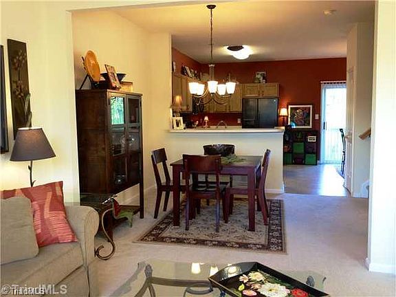 MOTIVATED SELLER! Great TH w/ open concept floor plan! 3BR, 2 full, 2 half BA. NEW kitchen appliances, NEW AC & furnace. Freshly painted, newer carpet, updated lighting (inside and out), 2 inch blinds throughout. Garage w/ opener and ample parking nearby. Backs to pond and walking/biking trail with breathtaking views from patio/deck and has it's own cul de sac. Pool included in condo fees, GREAT LOCATION! Near shopping & restaurants. Minutes to GSO, HP, WS, & Airport.