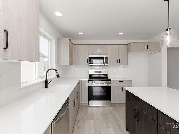 Feel enriched in your brand new home located in Meridian, Idaho! Embrace extra space with everything the Columbia 2530 has to offer! Multiple living spaces throughout the home provide unlimited options in how you use them. The main level contains a living room, a gathering room, and a bedroom, while the upstairs hosts an additional 4 bedrooms plus a loft space. The kitchen comes with stainless steel appliances and stylish solid surface countertops, adding both functionality and aesthetics to the kitchen. Retire upstairs and luxuriate in the expansive primary suite, which includes a generous walk-in closet and an en suite bathroom with dual vanities. All four bedrooms upstairs are thoughtfully arranged to be set apart from each other, providing privacy for everyone. Photos are of the actual home!