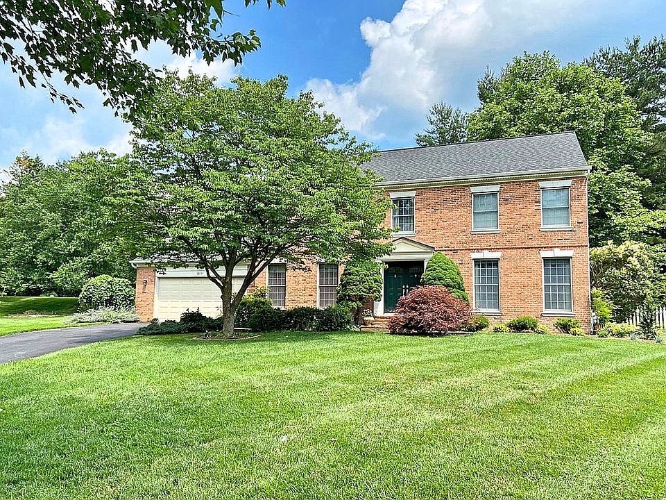 Stately brick front colonial with double door entry on beautifully landscaped lot at end of cul-de-sac! This home has been freshly painted and sparkles! Hardwood floors flow throughout the living, dining, family rooms and foyer on the main level and throughout the upper level! The kitchen overlooks the private backyard which features an extensive hardscaped patio ideal for entertaining or relaxing. Four large bedrooms and 2 bathrooms complete the upper level. The lower level is only limited by your imagination with space for any room your desire.