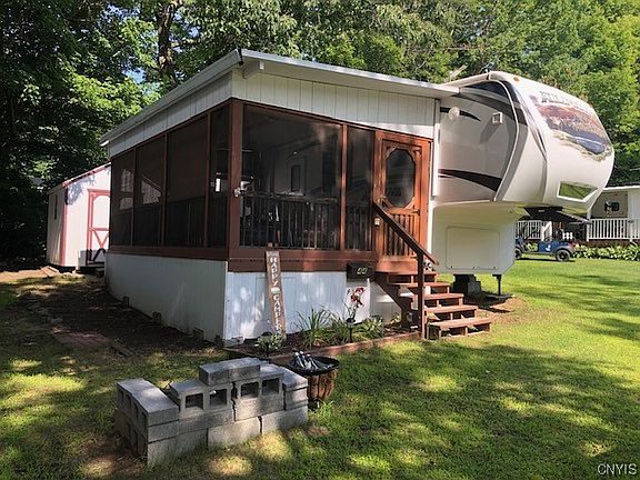 Affordable 1BR/1BA RV camper in Birch Haven Campground on the St. Lawrence River. Includes an attached spacious screened-in porch and storage shed w/electric. RV has central vacuum system, air conditioning, electric fireplace, washer & dryer and being sold furnished. Move-in ready! Park also has a small playground and nice common waterfront area with daytime dock access only. Main channel views and a nice spot to gather around a campfire and enjoy the sunsets! Call today!