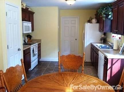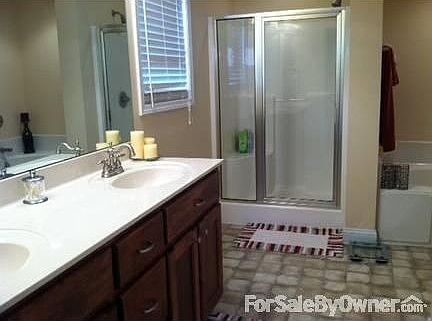 Square Feet 1510 w/ full basement Brick foundation with brick front except porch area Vinyl siding with trim Vinyl flooring in kitchen, laundry room and bathrooms Carpet in bedrooms Hardwoods in great room Garden tub with jets in master bath with walk in closet Chrome fixtures Paved drive way and sidewalk to front steps Back deck 12 x 12Additional property info: http://www.forsalebyowner.com/listing/EE410?provider_id=28079