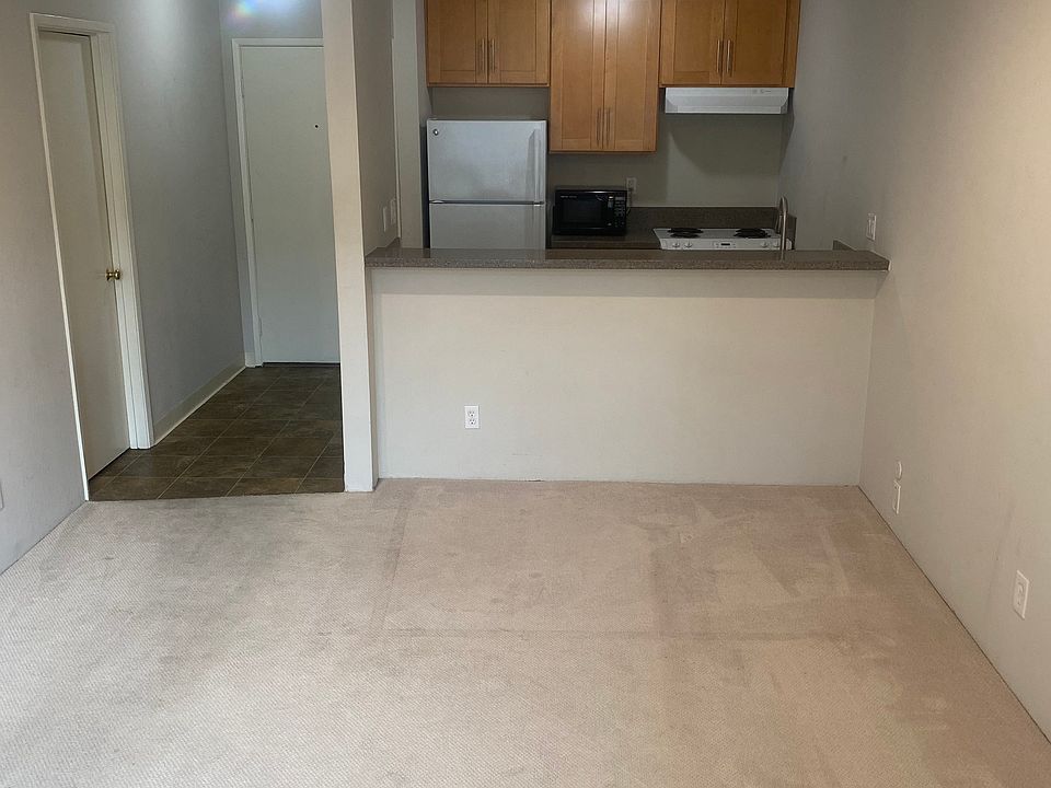 Nice sized studio with a separate space for the bed and a ton of natural light. Unfortunately, no offstreet parking is available. Owner pays for water and garbage