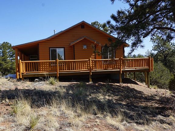In Cuerno Verde Pines just south of the small mountain town of Westcliffe, Colorado, lies a nice log ranch style home on 5+ acres of land just waiting for you to call it home. This Home has an open floor plan with the kitchen/dinning room that flowing into the living room. Master suite with a jet tub. Jack-n-Jill bedrooms completes this homes layout. The designers of this subdivision have named the roads after Indian tribes, which reflects the rich history in the area; Mount Blanca to your southwest is the original northeast corner of the Navajo Nation. Ride your ATV in the subdivision and hike the open-space canyon complete with rock outcroppings and a creek. Drive to the western mountains and hike, bike, and fish the high lakes, or attend one of the music festivals, parades, or rodeos that Westcliffe offers. The views are already in place of the Sangre De Cristos to the west. Peace and serenity can be found on this property as you relax, reflect, and behold the wondrous mountains while the sun casts a colorful glow with each new sunrise and sunset.