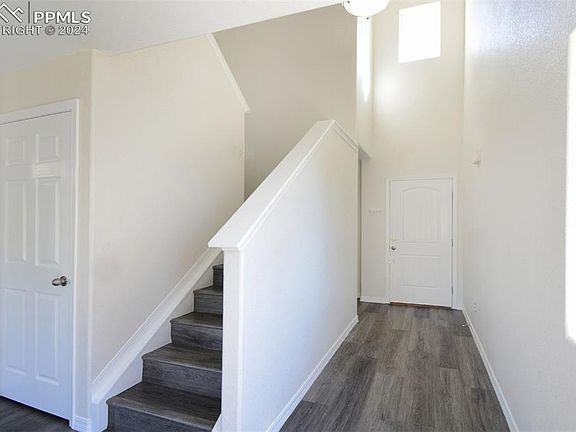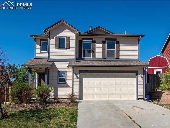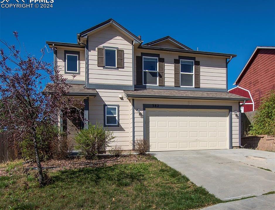 This two story home is located just minutes from Fort Carson in the desirable Tuscany Ridge subdivision. Upon entry you are greeted with vaulted ceilings and an expansive living room with plenty of natural light. The living room flows into the kitchen that features an island, plenty of cabinet space and a kitchen pantry. The main level offers a powder bath and a walkout to the backyard that is fully fenced with an ample amount of space showing over a quarter of an acre this lot has to offer. Upstairs offers three bedrooms to include the master and a dedicated laundry room. The two secondary bedrooms are conveniently located just steps from the full bath and are generous in size. The master bedroom includes a sitting area, a walk in closet and an adjoining bath. The two car garage is fully insulated and finished for those cold winter days. This home has new carpet and paint throughout and features air conditioning with forced air.