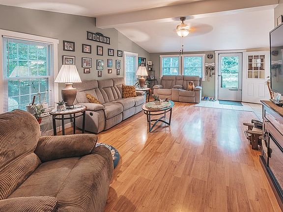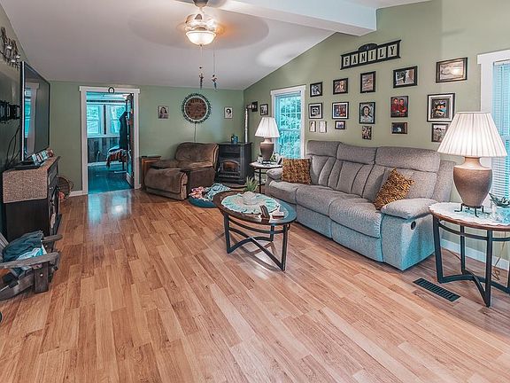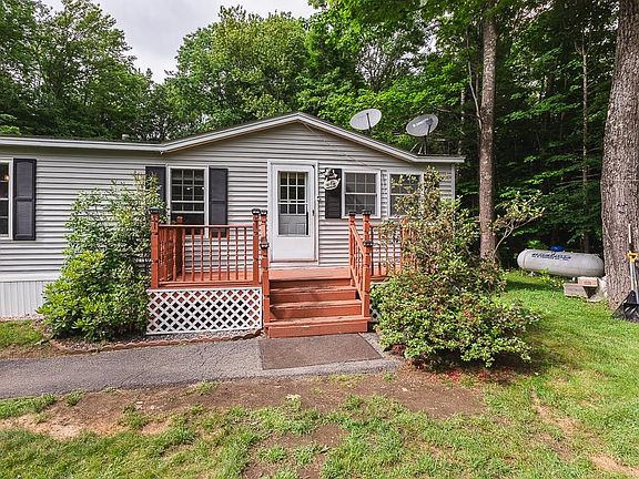 This home offers set on one acre, off 93 exit 19 and only 20 minutes to Concord, in the start of the Lakes Region of New Hampshire. Relax on the front or back deck of this well cared for, easy living one level home. Open concept living / dining / kitchen areas for entertaining plus a fabulous 13x13 4-season porch that leads to a huge newer deck, this is not your typical manufactured home, with a stick-built sunroom and garage, carport and huge shed/workshop! This 3-bedroom, 2 full bathroom home features updated appliances, laundry room, a pellet stove in the living room, and an inviting sunroom with gas heater and large windows. The property has everything: a hot tub, large driveway to the Carport & Garage even a 2nd driveway for RV or Boat parking, a generator hookup, and a front porch and a back deck. The seller has made many updates including a new water heater and water system, newer LVP flooring, newer appliances, updates to bathrooms, roof is also newer! Enjoy the pellet stove on chillier days and keep the home warm on cold winter nights. The primary bedroom has a spacious private bathroom, and the porch can be used as a guest room, playroom or private office space. The secluded deck off the back of the home offers room for BBQ's and outdoor hosting. Open house Friday 6/14 4:00-6:00 & Saturday 6/15 10:00-12:00
