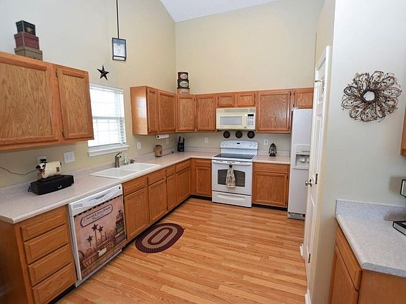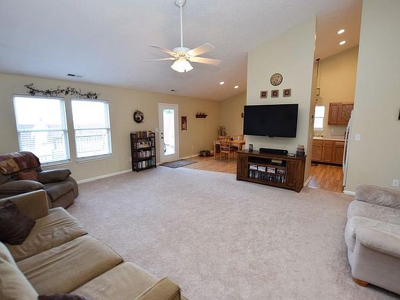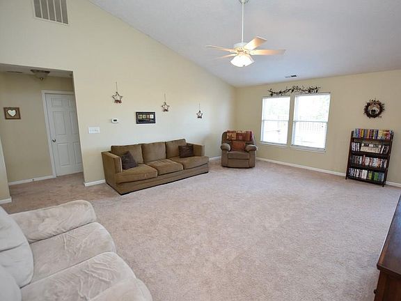 Very hard to find one level home with a three car garage. This spacious move in ready home has a large great room with vaulted ceilings and windows overlooking the back yard. The open concept floor plan has the great room open to the dining area and kitchen. The kitchen has lots of cabinets and includes a pantry and all of the appliances. Just off the kitchen and dining area a patio door leads you to the large deck that is perfect for entertaining and watching the sun set. The master suite is separate from other bedrooms and has a walk in closet and full bath. Two other bedrooms have ample closet space and share a full bath. You will love the spacious three car garage with attic storage and plenty of concrete drive to get in and out.