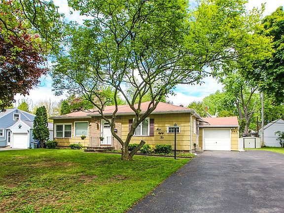 Large ranch home nestled on a tree lined Irondequoit street. Inside you are greeted by a cute entryway that opens into a large living room with a woodburning fireplace and hardwood floors. Off the living room step down into a bonus space that is perfect for a reading room or a home office. The eat in kitchen offers tons of storage in the white cabinets and some stainless appliances. Down the hall you will find 3 bedrooms with more hardwood floors and a full bath. If you need a little more space to sprawl out there is a finished basement with a wet bar and another full bath. Outside the peaceful backyard, with a patio, will be your favorite place to spend the summer. A double wide driveway with extra parking space next to the 1 car garage. All of this plus central air! Come fall in love with this adorable home today! Delayed negotiations until 5/28 at 5pm.