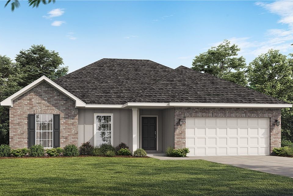 Step inside our Jackson plan, which showcases 4 beds and 2 baths, highlighted by a BRICK FRONT and low-maintenance vinyl accents. As you enter, you'll be welcomed by a cozy and stylish open layout, featuring an gas fireplace as the focal point of the great room. The spacious kitchen is designed with an appealing island, granite countertops, essential appliances, and a generous corner pantry. The primary bedroom is a true highlight, featuring two walk-in closets, a linen closet, and a private bathroom complete with both a separate tub and shower. For added convenience, there is direct access to the laundry room from the primary closet. The three additional bedrooms are thoughtfully positioned on the opposite side of this split floor plan, ensuring maximum privacy along with ample closet space. Relish the tranquil outdoors from the breezy, covered back porch that overlooks the expansive homesite, which spans well over half an acre. Artistic renderings are for informational purposes only, and actual floor plans and features may differ.