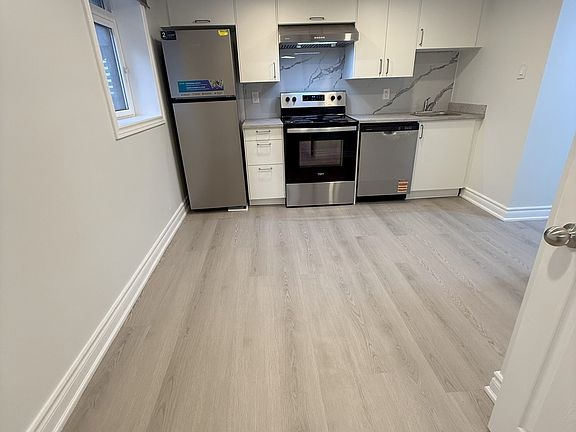 Newly finished basementModern kitchenStainless steel appliances