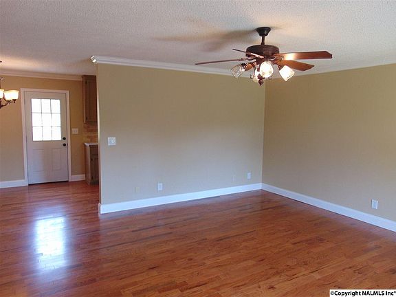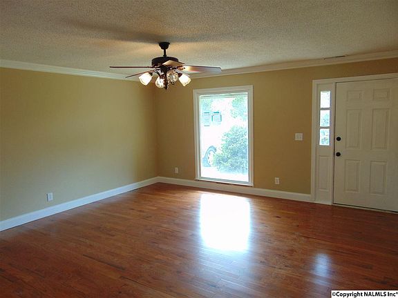 Great 3 Bed, 2 Bath move in ready starter home just 15 minutes south of Huntsville & Redstone. New siding & vinyl windows. New engineered hardwood floors throughout. New bathroom fixtures. Fresh paint throughout Large eat-in Kitchen with new stainless steel appliances & counter tops. New Water Heater. Large Master Suite with walk-in closet. 3 X 6 Storage room under attached carport. Nice yard with mature trees. 100% Financing possible. You really need to see this one to appreciate the condition.