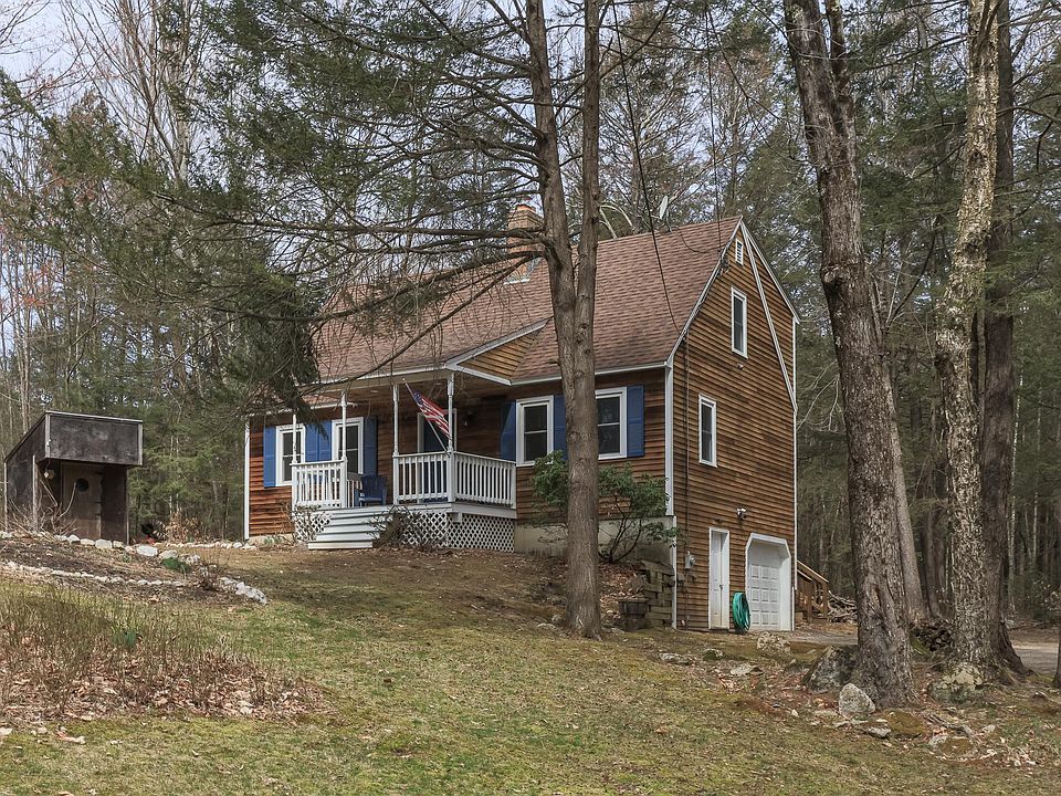 Looking for a quiet 5 acre wooded setting surrounded by nature to call home? This well-maintained home is light and bright with neutral colors! This charming center chimney Cape in desirable New Boston offers an open concept floor plan with a first floor bedroom and 3/4 bath. Wide pine floors in the kitchen/dining/living room. Updated center island granite kitchen with SS appliances. Delightful covered porch to relax and enjoy a warm, spring evening! It's grilling season and a large deck will accommodate a family gathering. The second floor offers two spacious carpeted bedrooms and full tiled bath. There are raised beds for gardening and a large shed to store all your tools. Enjoy a quiet scenic road that is your commute to your country home! Easy 35 minute commute to Manchester! Showings begin Saturday, April 15th at the open house 10 am - 1 pm. & Sunday, April 16th 11 am - 1 pm.