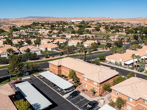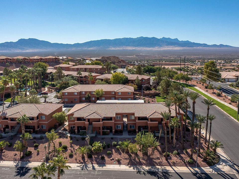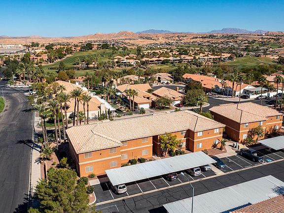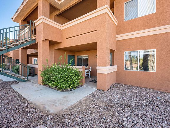 Great location! This unit sits right on the corner of Colleen & Turtleback, showcasing some spectacular views from your front patio. It's a short distance from the community pool and hot tub, but also gives you access to the Mesquite Vistas clubhouse that offers a gym, tennis courts, pickleball courts, and a large pool & hot tub area. This is a main level unit that offers 2 bedrooms, 2 bath, spacious living area, a small storage space located in your front patio, and best of all, a detached one-car garage! Tile flooring in the Kitchen and bathrooms, with ceiling fans in every room, Furnishings are also included with the price! Don't miss out on this beautiful condo.