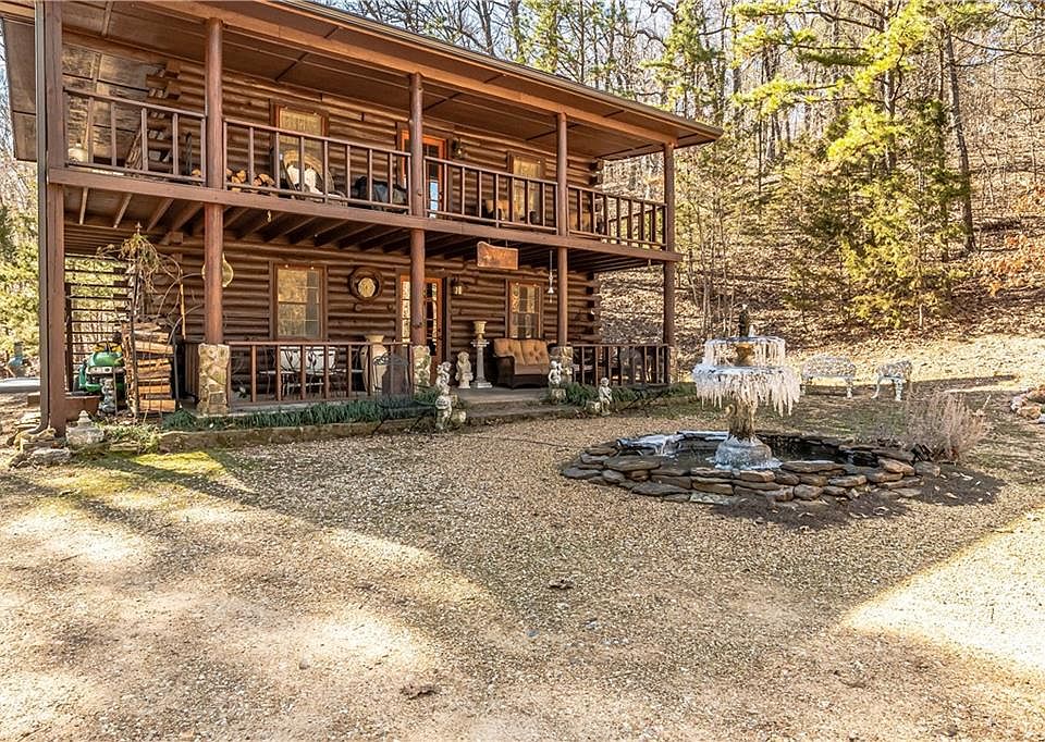 Log Home at the end of the Road for privacy.Awesome 4 Seasons living Room area brings the outdoors inside. Added in fall of 2018 is heated and cooled for added 16 X 20. Lower level and kitchen completely remodeled with new cabinets, countertops and Stainless appliances. New wood ceilings and interior walls, Plumbing and wiring in the lower Level. Stained glass window in lower bath. Mini Split Ductless heat and air in upper and lower levels of cabin. Upper level now used as a master suite but second sleeping area is used for dressing and setting area. Could be divided into separate bedrooms for little cost. Custom spiral staircase, Must see to Appreciate. Located on 3 lots with water available to each.Greenhouse id built in lot 8 with heat and water for wintertime plants. Quiet fairy garden 10 acres of common property with hiking trails, playground, 2 stocked ponds and club house/wedding chapel.Located a short distance from Eureka Springs shopping Entertainment and Dining. Only 35 Min. from Rogers area.