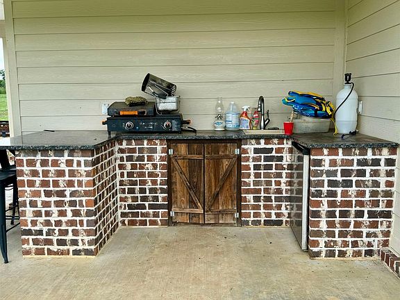 Beautiful custom home built 4 years ago located on approximately 31 acres just out of the city limits of Opp, but actually located in Coffee County. This home has just under 2000 sq ft of heated and cooled living space with 3 bedrooms, 2.5 baths, open floor plan, a one-car garage, an outdoor kitchen, an in-ground pool that is 2 years old, a large barn, and so much more. The speciatly ceilings, granite countertops, pot filler in the kitchen, under cabinet lighting, walk-in tile shower and jetted tub in main bath, stained concrete floors, pantry with sliding barn doors, and so much more. The exterior of the home is Hardie Board siding with a farmhouse/country look, which is perfect for the setting. Not visible from the main road, a fairly lengthy drive carries you across a creek and up to the home. The saltwater pool has a waterfall and was put in during 2022. There is a large concrete patio area complete with outdoor kitchen, half bath, and storage room that is perfect for entertaining.