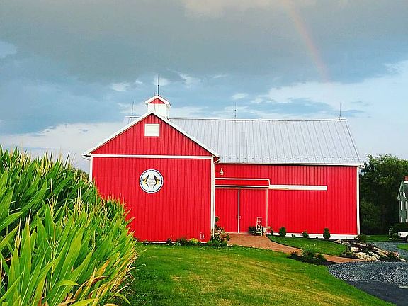 Totally redone farmhouse and barn * Nothing to do but move in * 11.49 acres total, 10 acres is planted corn (farm act) low taxes * Property is surrounded by 80 acre county park and stream * Country sights with city lights * 5 bedrooms * Stone & siding farmhouse * Master bedroom suite with walk-in closet, sitting area and master bath with double shower head * Formal living & dining rooms * Eat-in kitchen with granite countertops & stainless steel appliances * 2 fireplaces in living room and family room * 2nd floor office & laundry * 3 car attached garage * Hardwood, tile and w/w carpet * Central air and oil heat * 2.5 baths * Barn with a 22 x 10 owner suite, walk-in closet and rough plumbed for bath * Pool * Stream * 3rd floor bedroom is home theater (will not remain) * Too many updates to list * What a property, from the inside to the outside seeing is believing *
