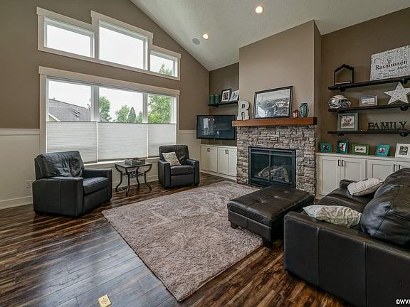 Accepted Offer with Contingencies. Newer home in established Stayton neighborhood. Gorgeous kitchen with DCS appliances and quartz countertops throughout. Laminate floors, stone wrapped gas fireplace, natural lighting from all of the windows and vaulted ceilings in the living room. Beautiful case work throughout and a large master bathroom that boasts his and her sinks, dual head walk in shower and a jetted stand alone tub. Enjoy the large back yard from the covered porch. Enjoy a 12x24 finished storage room. This home is a must visit.