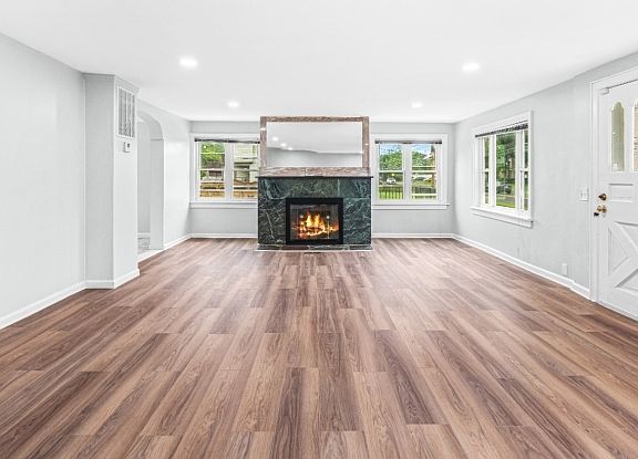 Off-street parkingRecessed lightingManicured garden bedsRefined finishesCozy back porchStatement fireplaceCenter island