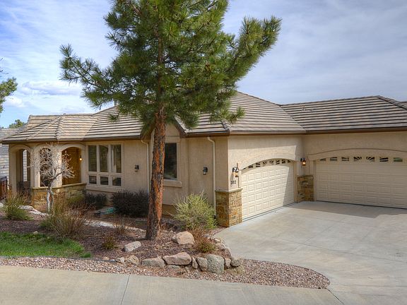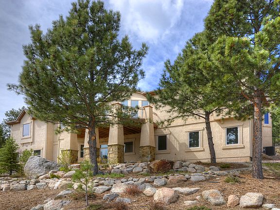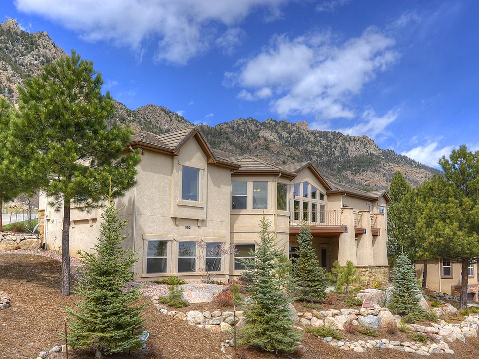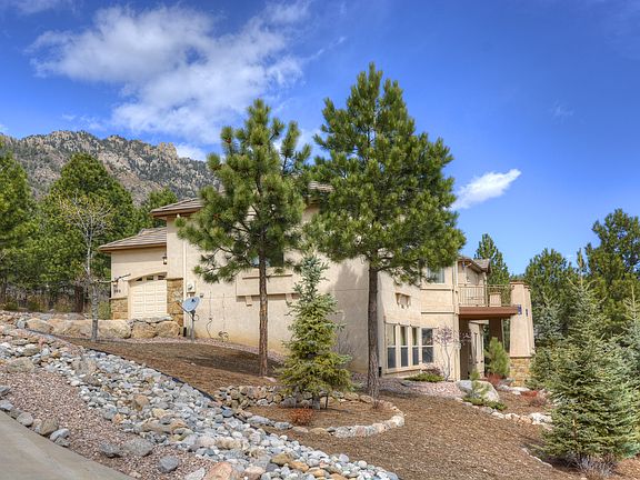 Exquisite ranch style home on a beautiful treed lot in Broadmoor Spires. Gourmet kitchen with cherry cabinets and beautiful granite slab counters. The great room has expansive ceilings and boasts gorgeous views through the large windows. Every room with a view of Cheyenne Mountain or the valley from Black Forest to Fountain. Spacious main-level master suite with fireplace, sitting area and custom bath. Basement features a large family/rec room with custom wet bar. Landscaped lot with mountain and city views galore! Deck area is perfect for entertaining. Beautiful architecture and hand-troweled walls and custom wrought-iron make this house absolutely breathtaking. Lot is adjacent to thousands of acres of open space. D12 schools. Move-in ready!