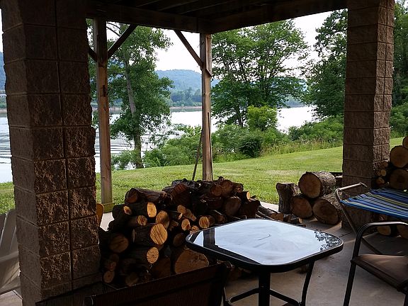 Riverfront property. . Association fee $120/year. Tastefully decorated and in move into condition. Stunning views of the river from the living and dining area. Newer flooring and furnace. Two bedrooms and 1.5 bath. Attached garage. Covered patio. Deck off the living room. Security system. 2.12 acres on the Ohio River.Apx 258 feet riverfront access. Two lots 1 plus acres for each....boat ramp 1/2 mile away.....