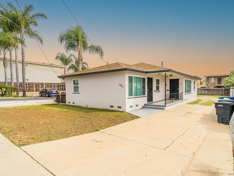 Pleased to present for sale 382 K St - a beautifully remodeled duplex with room to build additional units in the heart of Chula Vista. This property is a great opportunity for an owner-user or investor. The Unit mix consists of a 2Br/1Ba unit and a 1Br/1Ba unit currently rented for $2600 and $1,895 consecutively. The large back portion of the lot lends itself to development upside by building more units, or you can landscape a beautiful yard and additional parking area for tenants to enjoy. The property is just a short walk to the shops, restaurants and bars on 3rd Ave. The Chula Vista Bayfront development is underway with the Gaylord Resort and Convention Center on track to open in July 2025.