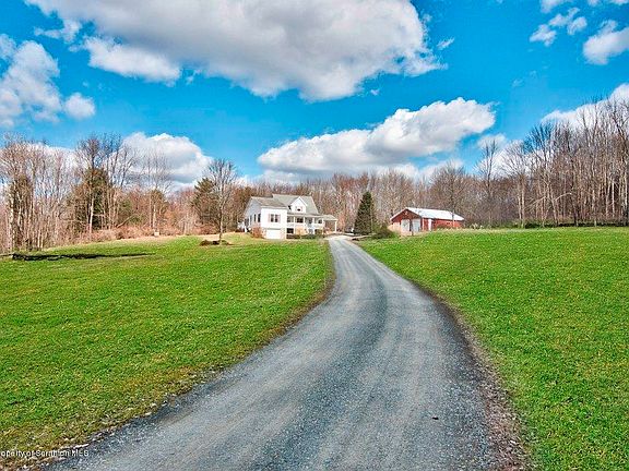 Truly a rare opportunity to purchase this modern home with a pole barn set on 41 acres. This corner location offers a mix of cleared fields & woods, and even has a rock quarry. The home has amenities throughout including a sun room, Great room with cathedral ceilings, hardwood floors, a 1st floor master suite, air conditioning, an office, 1st floor laundry, hard wired smoke detectors, therma pane windows, a built-in garage, carport & a large storage barn/garage. Ample storage throughout. All kitchen appliances included.