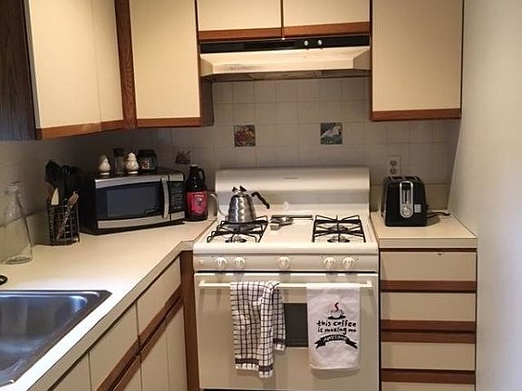 Spacious Living /dining room combo, walk in closet in Master with en-suite full bath, newer carpeting, central air, laundry area in full bathroom, plenty of parking. Near town, train, shopping and restaurants. Neutral grey painted recently, grey carpet in Living Dining and hall, Beige in both bedroom.Easy living near to everything Summit has to offer!
