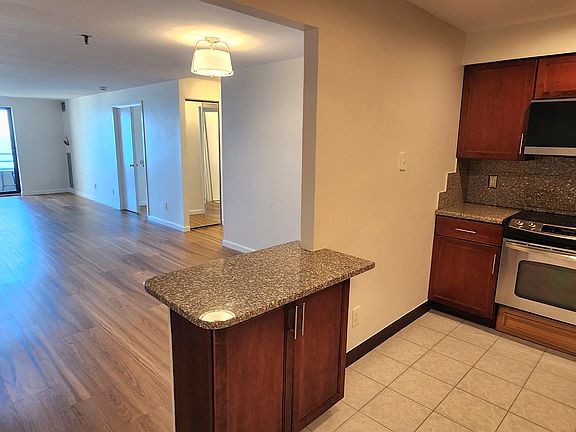 Available now! Sunny and Spacious 2 Bed / 2 Bath Condo with Parking located on Revere Beach near Wonderland MBTA Station. This 7th floor, 1200+ sqft unit features new flooring, modern kitchen with stainless steel appliances and granite counters, open living/dining room, spacious bedrooms, tiled bathrooms, private balcony with ocean views. Other features include central AC/Heat (utilities included in rent), 1 garage parking space included, shared laundry, building indoor pool and fitness center. Location is 0.2 miles, 4 min walk to Wonderland MBTA on Blue Line with direct access to Downtown Boston. Owner pays for gas, heat, hot water, air conditioning bills. Tenant pays for only electric bill + wifi/cable. Moving costs are first month's rent and 1 month security deposit. 1 Garage Parking space included in rent.