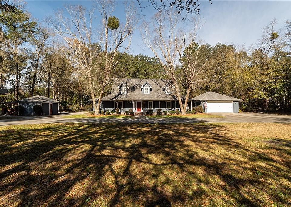 Looking for a unique property full of great amenities, with acreage, close to schools/shopping? This beautiful 4 bedroom, 2.5 bath home offers a spacious living room with a high ceiling open to above, fully updated kitchen, master bathroom, guest bathrooms, with new paint and flooring throughout. The grand brick fireplace runs from floor to ceiling. Enjoy quiet afternoons sitting in the partial wrap around porch, in-ground swimming pool, fire-pit area with seating, screened in back porch, private well with pump house with additional storage, circular driveway, detached two-car garage, and a gorgeous, wooded and landscaped yard. In the back you have a tree house, shed, and two car workshop with a bathroom/shower combo.
